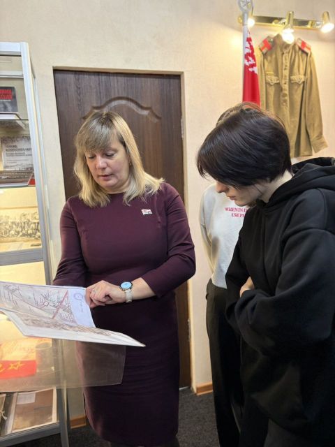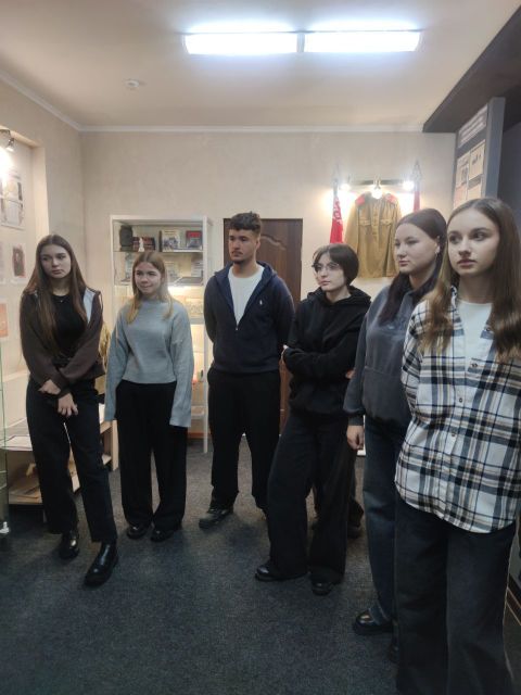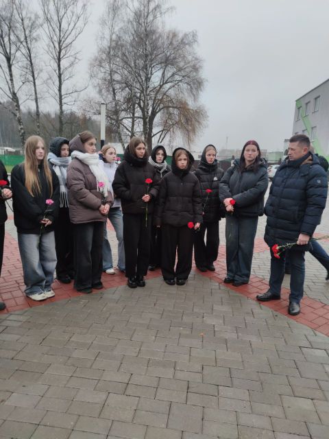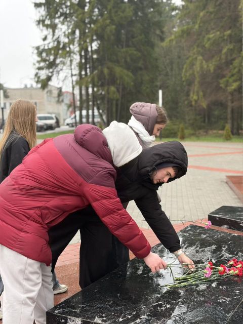 09.12.2025Сегодня обучающиеся Могилевского торгового и архитектурно-строительного колледжей вместе с руководителями по военно-патриотическому воспитанию возложили цветы к памятному знаку жертвам геноцида белорусского народа в годы Великой Отечественной войны на улице Ровчакова. К студентам и преподавателям присоединился председатель Могилевской областной организации ОО "Патриоты Беларуси" Александр Евгеньевич Шкадов. После церемонии для всех участников в нашем учреждении образования руководителем по военно-патриотическому воспитанию Ольгой Викторовной Рудаковской была проведена экскурсия по музейной комнате "Память и боль белорусской земли". Гостей познакомили с архивными документами, фотографиями и ценными экспонатами, кторые были собраны в результате кропотливого труда в экспозиции музейной комнаты.